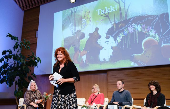 Mikilvægt að barnabókin endurspegli raunveruleika barna Sylvía Rut Sigfúsdóttir skrifar 22. október 2021 19:00 Kristín Helga Gunnarsdóttir hélt lokaávarp hátíðarinnar og skildi gesti eftir með mikilvæg skilaboð fyrir framtíðina. Mýrin, alþjóðleg barnabókahátíð, fór fram í Norræna húsinu á dögunum sem leið. Bergrún Íris Sævarsdóttir, barnabókahöfundur og einn af skipuleggjendum Mýrinnar, segir hátíðina hafa farið fram úr hennar björtustu vonum. „Ég er í hálfgerðu spennufalli eftir ótrúlega skemmtilega daga,“ segir Bergrún glöð í bragði. „Hátíðin átti að fara fram í fyrra en við tókum þá erfiðu en nauðsynlegu ákvörðun að fresta henni um ár vegna Covid. Þá vorum við bjartsýn um að lífið væri komið í eðlilegar skorður tólf mánuðum síðar en það reyndist samt erfið ákvörðun að láta vaða og halda hátíðina.“ Veðrið lék við gesti sem fengu leiðsögn um Reykjavík frá Lindu Ólafsdóttur og Margréti Tryggvadóttur. Bergrún segir ekki hlaupið að því að flytja hingað til lands erlenda rithöfunda frá fjölmörgum löndum enda heimsfaraldurinn enn ekki genginn yfir. Það hafðist þó að lokum og gátu erlendir höfundar notið nokkurra góðra daga á Íslandi. Bergrún Íris ásamt forseta Íslands sem bauð gestum og aðstandendum hátíðarinnar á Bessastaði þar sem hann ávarpaði hópinn með skemmtilegri ræðu um barnabækur. „Hingað komu margir af bestu rit- og myndhöfundum bransans auk þess sem við fengum tvo mjög sérstaka gesti, alla leið úr Múmíndal.“ Heimsókn Múmínsnáða og Míu litlu vakti sérstaka lukku hjá börnum jafnt sem fullorðnum. Starfsfólk Norræna hússins gladdist þegar Múmínsnáði og Mía litla kíktu í heimsókn. „Ég held að starfsfólk Norræna hússins hafi orðið enn æstara en börnin og allir fengu mynd með þessum dásamlegu persónum, sem segir okkur hversu mikil áhrif skáldaðar barnabókapersónur geta haft og hversu lengi þær lifa með okkur.“ Börn bjuggu til sína eigin fjölnota poka með þeim Agnese Vanaga og Anna Vaivare frá Litháen. Er þetta í tíunda skipti sem Mýrin fer fram og var þema ársins tengt loftslagsbreytingum, náttúru og samfélagi. Kennarar frá Íslenska myndasögusamfélaginu héldu fyrirlestur fyrir unglinga. „Þegar við í stjórninni litum yfir barnabækur nútímans sáum við að loftslagsmál og fólksflutningar koma gjarnan við sögu, enda liggja þau mál þungt á börnum rétt eins og öðrum jarðarbúum. Sjálf tel ég mikilvægt að barnabókin endurspegli raunveruleika barna. Vönduð og vel gerð barnabók getur hjálpað barni að átta sig betur á aðstæðum, stýrt þeim frá kvíða og hvatt til aðgerða. Þetta eru allt málefni sem við getum betur tekist á við saman og þess vegna varð yfirskrift hátíðarinnar „Saman úti í Mýri,“ segir Bergrún brosandi að lokum. Gestir hlýddu á fjölbreyttar og áhugvaverðar málstofur fyrsta daginn. Fleiri vel valdar myndir frá hátíðinni má sjá í albúminu hér fyrir neðan. Rit- og myndhöfundurinn Lára Garðarsdóttir las upp úr fallegu bókinni sinni Flökkusaga sem fjallar á einlægan hátt um fólksflutninga, eða öllu heldur bjarnar-flutninga.Indrek Koff hélt vinnustofu þar sem hann kenndi krökkum að finna innblástur frá hljóðum, dró af því tilefni upp kornett og blés nokkra tóna.Hópur barna teiknaði sinn uppáhalds stað í sólkerfinu með Stjörnu-Sævari.Kristín Helga Gunnarsdóttir hélt lokaávarp hátíðarinnar og skildi gesti eftir með mikilvæg skilaboð fyrir framtíðina.Teikninemar Myndlistaskólans í Reykjavík skissuðu á meðan pallborðsumræðum stóð.Norræna húsið hefur verið heimili hátíðarinnar frá upphafi. Bókmenntir Börn og uppeldi Menning Mest lesið Fasteignasalar og ofurskvísur í Októberfest stemningu Lífið Eitt glæsilegasta hús Reykjavíkur til sölu Lífið Bragðgott quesadilla á einni plötu Matur Fimm góðar um vonda færð, snjóstorma og ærandi innilokunarkennd Bíó og sjónvarp Meðalmennskan plagar Brján Gagnrýni Troðningur á yfirfullri opnun: „Þetta var svolítið kreisí“ Lífið Hvað þýðir „six-seven“? Lífið Fékk lífið til baka á korteri eftir tólf ár af sársauka Lífið Vafðist tunga um tönn þegar Bond bar á góma Bíó og sjónvarp Sjóðheitt fyrir snjóstorm Tíska og hönnun Fleiri fréttir Fasteignasalar og ofurskvísur í Októberfest stemningu Eitt glæsilegasta hús Reykjavíkur til sölu „Þetta er það fallegasta sem einhver hefur sagt um mig“ Hvað þýðir „six-seven“? Smáforrit til að deila heimilisverkum: „Fæ þrjú stig fyrir að þurrka af á heimilinu“ Kynslóðabilið kom í ljós þegar umræðan beindist að blautbolakeppni Ljúffengar banana- og kakóbollakökur í nestisboxið Troðningur á yfirfullri opnun: „Þetta var svolítið kreisí“ Pétur Kr. og Ingibjörg selja 270 fermetra eign við Ægisíðu Barist upp á líf og dauða „Get ekki hætt að hugsa um bragðarefinn sem hann pantaði“ Langþráður draumur verður að veruleika Samsæriskenningar notaðar sem stjórntæki Stjörnulífið: „Dagur sem mun aldrei gleymast“ Gisti hálft ár á sófum hjá bekkjarfélögum Betra að vera blankur nemi í New York Kynlífið innantómt með öðrum en fyrrverandi Fékk lífið til baka á korteri eftir tólf ár af sársauka Staðfesta loks sambandið Einar og Milla skírðu drenginn Með blæðandi hjarta og ber örin með stolti Krakkatían: Kvennafrídagurinn, Ólsen ólsen og málsháttur Áslaug Arna kom alblóðug inn í sjúkratjaldið Upplifði stöðugan ótta við helvíti í samfélagi múslima í Svíþjóð Getur alls ekki verið einn Fréttatía vikunnar: Ungfrú Ísland Teen, Louvre-þjófnaður og hrukkur Myndaveisla: Troðfullur miðbær á kvennafrídegi Borgarfulltrúi bjargaði stolnum barna