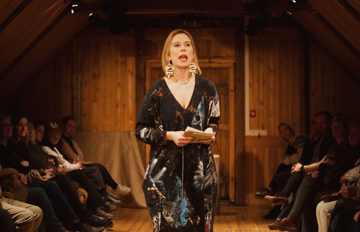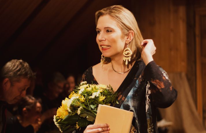 Myndaveisla: Júlía Margrét frumsýndi Guð leitar að Salóme Elma Rut Valtýsdóttir skrifar 18. apríl 2023 12:00 Júlía Margrét Einarsdóttir frumsýndi verk sitt Guð leitar að Salóme í Landnámssetrinu á laugardaginn. Mateusz Sajdowski Rithöfundurinn Júlía Margrét Einarsdóttir frumsýndi verk sitt Guð leitar að Salóme á Sögulofti Landnámssetursins á laugardaginn. Guð leitar að Salóme er skáldsaga eftir Júlíu Margréti sem kom út árið 2021 og snerti bókin við lesendum á eftirminnilegan hátt. Nú færir Júlía sálarstríð fjölskyldunnar af Skipaskaga á fjalirnar í einleik sem byggður er á bókinni. Það var húsfylli á frumsýningunni á laugardaginn og voru viðbrögð gesta góð. Bókmenntafræðingurinn Silja Aðalsteinsdóttir hafði meðal annars þetta að segja: „Júlía Margrét er mjög aðlaðandi manneskja sem hefur þægilega nærveru og það sem mest er um vert: hún er afar vel máli farin og hefur góðan orðaforða. Það er bæði gaman og upplyftandi að hlusta á hana. Henni var tekið með kostum og kynjum eftir frumflutninginn í gærkvöldi og freistandi að segja: Hér er stjarna fædd!“ Þetta er ekki í fyrsta skipti sem Júlía Margrét stígur á svið á Söguloftinu en hún hefur áður deilt sviðinu með föður sínum Einari Kárasyni þegar þau túlkuðu Skálmöld árið 2015. Hér fyrir neðan má sjá myndir frá frumsýningu Guð leitar að Salóme. Mateusz SajdowskiMateusz SajdowskiMateusz SajdowskiMateusz SajdowskiMateusz SajdowskiMateusz SajdowskiMateusz SajdowskiMateusz SajdowskiMateusz SajdowskiMateusz SajdowskiMateusz SajdowskiMateusz SajdowskiMateusz SajdowskiMateusz SajdowskiMateusz SajdowskiMateusz SajdowskiMateusz SajdowskiMateusz SajdowskiMateusz SajdowskiMateusz SajdowskiMateusz SajdowskiMateusz SajdowskiMateusz SajdowskiMateusz SajdowskiMateusz SajdowskiMateusz SajdowskiMateusz Sajdowski Samkvæmislífið Menning Bókmenntir Leikhús Mest lesið Meðalmennskan plagar Brján Gagnrýni Aldrei of seint að prófa sig áfram Tíska og hönnun Kynslóðabilið kom í ljós þegar umræðan beindist að blautbolakeppni Lífið Hótelstjóri Hótels Tindastóls er allur Bíó og sjónvarp Skein skært í sögulegum gleðikonukjól Tíska og hönnun Hvað þýðir „six-seven“? Lífið Troðningur á yfirfullri opnun: „Þetta var svolítið kreisí“ Lífið Smáforrit til að deila heimilisverkum: „Fæ þrjú stig fyrir að þurrka af á heimilinu“ Lífið Fékk lífið til baka á korteri eftir tólf ár af sársauka Lífið „Fallegasti drengur í heimi“ er látinn Bíó og sjónvarp Fleiri fréttir Hvað þýðir „six-seven“? Smáforrit til að deila heimilisverkum: „Fæ þrjú stig fyrir að þurrka af á heimilinu“ Kynslóðabilið kom í ljós þegar umræðan beindist að blautbolakeppni Ljúffengar banana- og kakóbollakökur í nestisboxið Troðningur á yfirfullri opnun: „Þetta var svolítið kreisí“ Pétur Kr. og Ingibjörg selja 270 fermetra eign við Ægisíðu Barist upp á líf og dauða „Get ekki hætt að hugsa um bragðarefinn sem hann pantaði“ Langþráður draumur verður að veruleika Samsæriskenningar notaðar sem stjórntæki Stjörnulífið: „Dagur sem mun aldrei gleymast“ Gisti hálft ár á sófum hjá bekkjarfélögum Betra að vera blankur nemi í New York Kynlífið innantómt með öðrum en fyrrverandi Fékk lífið til baka á korteri eftir tólf ár af sársauka Staðfesta loks sambandið Einar og Milla skírðu drenginn Með blæðandi hjarta og ber örin með stolti Krakkatían: Kvennafrídagurinn, Ólsen ólsen og málsháttur Áslaug Arna kom alblóðug inn í sjúkratjaldið Upplifði stöðugan ótta við helvíti í samfélagi múslima í Svíþjóð Getur alls ekki verið einn Fréttatía vikunnar: Ungfrú Ísland Teen, Louvre-þjófnaður og hrukkur Myndaveisla: Troðfullur miðbær á kvennafrídegi Borgarfulltrúi bjargaði stolnum barnavagni „Segið að ég sé samkynhneigður en ekki ljúga með hitt“ Notaði ákveðinn mat til að hjálpa í krabbameinsmeðferðinni „Konu“ tónleikar í Hvolnum á Hvolsvelli í kvöld Kim Kardashian greindist með heilagúlp Stjörnurnar þökkuðu Vigdísi Sjá meira