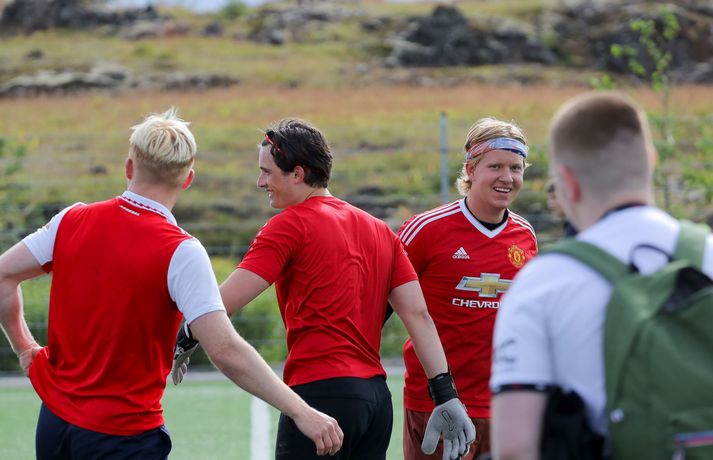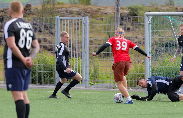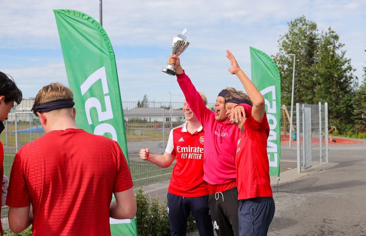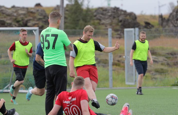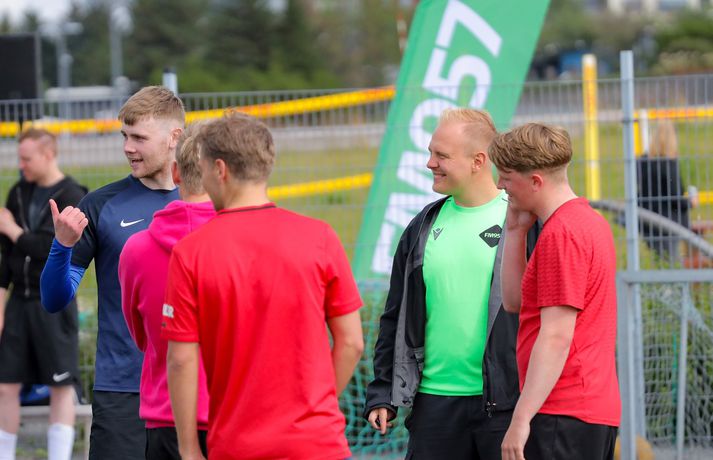 Átta lið voru skráð til leiks í mótið sem var með riðlafyrirkomulagi. Hvert lið innihélt sjö leikmenn og var spilað 5 á 5 í fimm mínútna leikjum. Rikki G og Egill Ploder, starfsmenn FM957, voru umsjónarmenn og kynnar mótsins og sáu um að allt færi sómasamlega fram. Þeir fengu líka til sín góða gesti og lýstu leikjunum af mikilli innlifun. Fótboltamót FM957. Myndir/Viktor Freyr Liðið Hermann og fleiri sigraði mótið og voru krýndir meistarar í lok móts. Kampakátir sigurvegarar Fótboltamóts FM957 fögnuðu vel. Mynd/Viktor Freyr Fótboltamót FM957. Myndir/Viktor Freyr Í öðru sæti varð liðið KefLestin. KefLestin lenti í öðru sæti á Fótboltamóti FM957. Mynd/Viktor Freyr