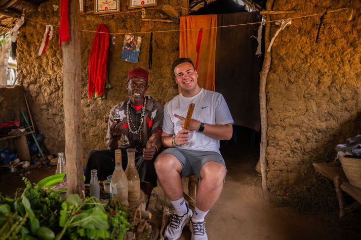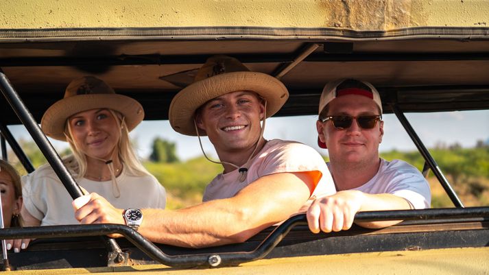 Arnar Dór er kvikmyndagerðarmaður fæddur árið 1999 og rekur framleiðslufyrirtækið AD Productions. Hann ræddi við blaðamann um þessa ævintýraferð sem hann segir að sé mögulega ein sú besta sem hann hefur farið í hingað til en Arnar Dór hefur verið duglegur að ferðast um heiminn og upplifa nýja hluti. Tveir vinahópar hópuðu sig saman í ferðina og Arnar Dór var að hitta nokkra ferðafélaga í fyrsta sinn á flugvellinum. Það væsir ekki um Arnar Dór í Kenýa.Róbert Arnar Hvar ertu staddur? Ég er staddur í Kenýa, nánar tiltekið á Diani Beach, sem er í um klukkustundar akstursfjarlægð frá Mombasa. Ég er hér með átta vinum í algjörri paradís á miðbaugnum. Níu vinir í paradís. Róbert Arnar Með hverjum ertu? Með mér eru Róbert Arnar, Sandra Sif, Axel Freyr, Védís Vaka, Viktor Guðmundsson, Solveig Nordal, Kári Steinn og Guðmundur B. Brynleifs en Gummi er sonur Brynleifs sem byggði villuna sem við gistum í. Þetta eru í raun tveir vinahópar og við ætluðum að vera búin að taka saman dinner og kynnast áður en við lögðum af stað en náðum því aldrei. Þannig við hittumst bara á flugvellinum öll í fyrsta skipti á brottfarardeginum sem var bara geggjað því ég elska að kynnast nýju fólki. Hvað varð til þess að þið ákváðuð að fara til Kenýa? Ég kynntist Gumma fyrir ári síðan og það voru hann og Axel sem buðu mér að slást í för með þeim. Ég ákvað að kýla á það og taka upp skemmtilegt myndefni og upplifa um leið nýjan menningarheim. Mér finnst fullkominn tími núna til að fara, lengja sumarið aðeins áður en veturinn skellur á og ég sé sko ekki eftir því. Fólkið hér í Kenýa er ótrúlega vingjarnlegt og gestrisið, hvort sem maður er inni í borg eða í litlu þorpi og krakkarnir hlaupa skælbrosandi til að heilsa manni. Arnar Dór elskar að kynnast menningu og fólkinu úti.Aðsend Hvar gistið þið? Við gistum í glæsilegri 900 fermetra villu sem Brynleifur reisti í Villa Branca á Diani Beach. Hér er allt til alls, við erum með kokk, gestgjafa, þjóna, þernu og garðyrkjumann sem sjá um allar okkar þarfir og líka fullt af afþreyingu, svo sem pool, píla, sundlaug og nudd. Þetta er algjör drauma-paradís. Villa Branca býður upp á algöran lúxus.Aðsend Hvað tók ferðalagið langan tíma? Ferðalagið tók um sólarhring frá því ég lagði af stað að heiman og þar til að ég kom í villuna. Flugið frá Íslandi til Frankfurt tók fjórar klukkustundir, flugið til Mombasa tók níu klukkustundir og með bílferðum og bið á flugvöllum tók ferðalagið sólarhring. Hvað er dýrasti liðurinn í ferðinni? Það eru líklega flugin. Við fengum frábæran díl á gistingu, Gummi og Brynleifur buðu okkur að vera hjá sér, en auðvitað bætast við ýmsir kostnaðarliðir eins og ferðir á milli staða, matur á veitingastöðum og alls konar skemmtilegar upplifanir. En í grunninn er samt allt ódýrt hérna úti. Flugið er dýrasti liðurinn í ferðalaginu en krakkarnir hafa gert ýmislegt spennandi og skemmtilegt úti og segja að það sé almennt ódýrt að vera þarna.Arnar Dór Hvað hafið þið gert skemmtilegt? Við erum búin að vera hér í viku og komum heim næstkomandi fimmtudag. Við erum nú þegar búin að upplifa margt áhugavert og gera margt mjög skemmtilegt en auðvitað er allt hérna gjörólíkt því sem maður á að venjast heima. Hér er stanslaus sól og hiti, um þrjátíu stig alla daga, svakalega fallegt landslag og dásamlegt fólk. Kannski mætti segja að við höfum upplifað í smækkaðri mynd flest það sem Kenýa hefur upp á að bjóða þó við eigum auðvitað eitthvað eftir. Við höfum meðal annars spilað golf á hrikalega flottum PGA golfvelli, farið í geggjað tveggja daga Safari, hitt ættbálka, farið á ströndina, farið á Jet Ski, borðað út um allt á frábærum veitingastöðum og notið lífsins þess á milli í villunni þar sem sundlaugin kemur sterk inn. Golfið var einstaklega eftirminnilegt.Arnar Dór Er eitthvað sem stendur upp úr? Það er erfitt að gera upp á milli allra ævintýrana sem við höfum farið í, því þessi ferð er í raun bara ein stór upplifun sem maður mun aldrei gleyma. Golfið var sturlað, ég hef aldrei spilað golf annars staðar en á Íslandi, hvað þá á PGA velli, manni leið eins og stórstjörnu þar. Svo var frekar súrrealískt að spila golf á braut með sebrahestum og öpum! Safari ferðin var alveg hreint geggjuð þar sem hver einasta mínúta var ný og ný upplifun sem er eiginlega ómögulegt að lýsa í orðum; myndir og myndbönd fanga það miklu betur. Þetta var tveggja daga ferð þar sem við fórum í stærsta þjóðgarðinn í Kenýa sem er um 14.000 km2 þar sem við sáum alls kyns villt dýr; fíla, gíraffa, ljón, sebrahesta, flóðhesta og antilópur svo eitthvað sé nefnt. Safari-ið var algjörlega ógleymanlegt að sögn Arnars.Arnar Dór Við gistum eina nótt í hálf-tjöldum inni í þjóðgarðinum þar sem við vorum umkringd villtum dýrum sem var mjög sterk upplifun og svolítið súrrrealískt að gista á stað þar sem villt dýr eru í garðinum fyrir utan „herbergið“ þitt. Í myrkrinu heyrði maður alls konar hljóð sem gerði upplifunina enn sterkari, það er eiginlega ómögulegt að lýsa tilfinningunum í orðum, maður þarf að upplifa þetta til að skilja það. Arnar Dór segir að ferðalagið hafi verið ólýsanlega magnað í alla staði.Sandra Sif Í lok ferðarinnar á leiðinni til baka í villuna stoppuðum við í þorpi hjá ættbálki þar sem þau sýndu okkur hvernig þau lifðu, húsin úr kúaskít og leir með stráþökum með plasti á milli til að halda húsunum köldum og þurrum. Þau meðal annars veiða sér til matar og eiga kýr sem þau drekka bæði mjólk og blóð úr. Er eitthvað sem þú mælir sérs