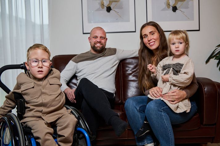 Klukkustundargamall í fyrstu aðgerð Hallur býr á Akranesi hjá foreldrum sínum, þeim Ylfu og Guðjóni, og hann á tvær systur, Árnýju Leu sem er 15 ára og Öglu sem er 2 ára. Ylfa og Guðjón eru bæði fædd og uppalin á Skaganum og þar hefur fjölskyldan fest kyrfilegar rætur. Skagafjölskylda í húð og hár. Þau fengu að vita það snemma á meðgöngunni að Hallur myndi fæðast með vatnshöfuð, sem veldur því að mænuvökvi safnast upp inni í höfuðkúpunni. Þá hækkar þrýstingur inni í höfðinu og heilahólfin stækka.Nokkrum vikum síðar kom í ljós að hann myndi fæðast með klofinn hrygg (e. spina bifida) og Chiari-mislögun í afturheila, sem hefur áhrif á litla heilann, á kyngingu og hreyfifærni í höndum, og hvernig hann lærir og talar. „Það var vitað að hann myndi þurfa að fara strax í aðgerð eftir að hann fæddist. Það þurfti að loka raufinni á bakinu á honum af því að það var opið inn í mænuna,“ segir Ylfa. „Þegar við fengum greininguna á meðgöngunni þá fengum við verstu mögulegu mynd sem hægt er að fá. Þeim möguleika var vissulega velt upp við okkur að binda endi á meðgönguna, en valið var auðvitað alltaf okkar. Og við vorum alltaf hörð á því að við vildum halda meðgöngunni áfram. Þegar verðandi foreldrar fá svona svarta mynd þá er eðlilegt að þeir verði hræddir. Þess vegna skilur maður það alveg að sumir kjósi að halda ekki áfram með meðgönguna. Það kom aldrei til greina hjá okkur. Meðgangan var vissulega erfið og kvíðavaldandi á köflum; við vorum stöðugt að gúgla og leita að upplýsingum.“ Ylfa og Guðjón standa þétt saman.Vísir/Anton Brink Tveggja ára í hjólastól Hallur var ekki nema rúmlega klukkustundargamall þegar hann fór í sína fyrstu aðgerð, þar sem raufinni á hryggnum var lokað. Það átti eftir að vera fyrsta aðgerðin af mörgum. Þegar hann var þriggja vikna fór hann í aðgerð þar sem ventli var komið fyrir í höfðinu á honum til að „tappa af“ mænuvökvann. Hann er enn þá með ventilinn í dag. Hallur er með flóknustu útgáfuna af klofnum hrygg og er sá yngsti hér á landi sem greinst hefur með þennan tiltekna fæðingargalla. „Klofinn hryggur hefur áhrif á hreyfifærni og getu. Taugarnar í mænunni eru skemmdar, sem gerir það að verkum að Hallur getur ekki hreyft fæturna eins og aðrir, auk þess sem hann hefur ekki stjórn á þvagblöðru eða þörmum.“ Sökum fæðingargallans getur hann ekki gengið og þess vegna hefur hann verið í hjólastól síðan hann var tveggja ára gamall. Þegar hann var orðinn þriggja ára var hann síðan greindur með flogaveiki. „Það veldur því að hann dettur út og verður grár í framan, kófsvitnar og stundum ælir hann. Þú nærð ekki sambandi við hann og svo sofnar hann.“ Fjölskyldan býr á Skaganum þar sem þau eiga öflugt tengslanet.Vísir/Anton Brink Engin eftirsjá Sökum veikinda sinna hefur Hallur þurft að gangast undir óteljandi aðgerðir á sinni stuttu lífsleið, hann hefur þurft að dvelja langdvölum á spítala og verið undir stöðugu eftirliti hjá læknum og hinum og þessum fagaðilum. Ylfa leggur áherslu á að þrátt fyrir allar þessar hindranir, álag og erfiðleika þá hafi þau foreldrarnir aldrei nokkurn tímann séð eftir þeirri ákvörðun að halda meðgöngunni áfram á sínum tíma, þrátt fyrir hrakspár lækna. „Það var sagt við okkur á sínum tíma að Hallur ætti aldrei eftir að geta hreyft sig eðlilega, hann ætti líklega ekki eftir að geta talað, og að hann ætti eftir að vera með mikinn spasma í höndunum. Okkur var líka sagt að hann ætti ekki eftir að geta lært að lesa eða lært stærðfræði. Hann yrði yfirhöfuð mjög fatlaður.“ Raunin hafi orðið allt önnur. Bara verkefni sem við fengum „Hann er ótrúlega klár, er í leikskóla eins og önnur börn og er byrjaður að læra stafina og er líka byrjaður að læra stærðfræði. Og hann er ekki með neinn spasma. Þó svo að hann sé að glíma við mörg flókin og erfið verkefni, þá eru líka svo margir aðrir litlir hlutir sem skipta máli og vega upp á móti. Þetta er bara verkefni sem við fengum og við höfum öll lagt okkur fram við að veita Halli eins gott líf og mögulegt er. En mér finnst líka skipta miklu máli hvernig læknar orða hlutina við verðandi foreldra sem eru í þessum ástæðum. Það er oft svo mikill skortur á viðeigandi fræðslu og upplýsingum. Hent út á hafsjó Veikindi Halls hafa haft í för með sér margvísleg fjárútlát. Hann þarf á ýmiss konar stoðtækjum og búnaði að halda og ofan á það bætast við útgjöld sem tengjast reglulegum lækna- og spítalaheimsóknum, lyfjagjöf og ýmsu öðru. Sumt borga Sjúkratryggingar en annað ekki. Hallur er hress og lífsglaður strákur sem heillar alla upp úr skónum.Vísir/Anton Brink „Það er alls konar kostnaður sem er fljótur að safnast upp, alls konar útgjöld hér og þar. Það er full vinna að vera í þessum „pakka“, þetta er endalaust stúss og vesen.“ Ylfa fer hvergi leynt með það hversu mikið álag fylgir þessu öllu saman, og það getur tekið sinn toll. Hún hefur verið ansi nálægt því að enda í kulnun á tímabili. „Í upphafi vissum við ekkert hver okkar réttur væri eða hvert við ættum að leita. Þegar þú ert foreldri í þessari stöðu, þá er þér eiginlega bara hent út í einhvern hafsjó og svo þarftu bara að redda þér einhvern veginn. Stundum skilur maður ekki hvaða batteríi maður er að keyra á.“ Ylfa og Sigurjón þurftu til að mynda að festa kaup á stærra húsnæði til að tryggja fullnægjandi aðgengi fyrir Hall. Það er fyrirséð að fjölskyldan þurfi ýmsan sérhæfðan búnað og tæki á næstunni. Nú standa þau frammi fyrir því að þurfa að festa kaup á 
