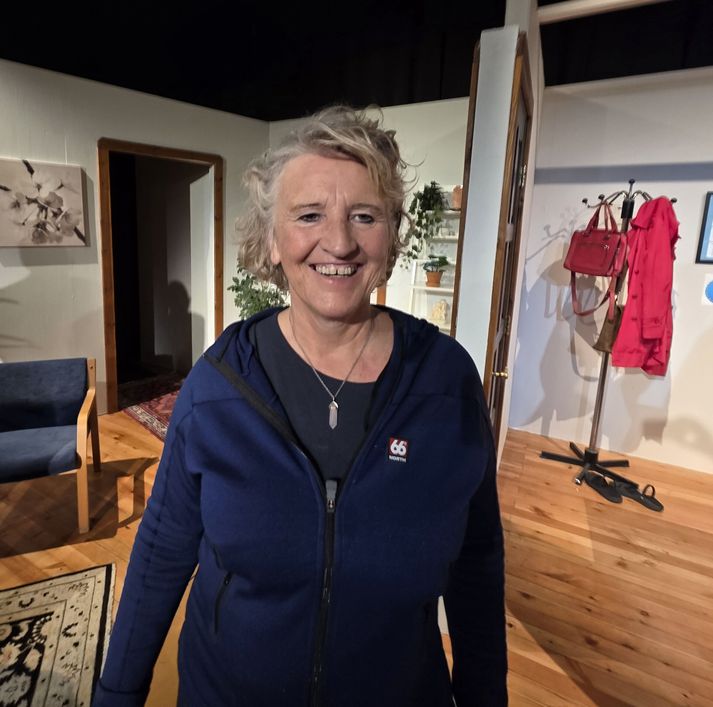 Barneignir og sauðfjárrækt á sviðnu í Aratungu Magnús Hlynur Hreiðarsson skrifar 11. október 2025 20:06 Hluti af leikarahópnum í verkinu 39 og ½ vika, ásamt Ólöfu leikstjóra. Magnús Hlynur Hreiðarsson Það gengur mikið á í félagsheimilinu Aratungu í Biskupstungum þessa dagana því þar eru barneignir og sauðfjárrækt í aðalhlutverki, sem leiðir til hvers konar misskilnings eins og vera ber í góðum gamanleik, sem leikdeildin í sveitinni er að setja upp. Æfingar á gamanleiknum 39 og ½ vika hafa staðið yfir í Aratungu síðustu vikur en verkið er eftir Hrefnu Friðriksdóttir og er í leikstjórn Ólafar Sverrisdóttur. Verkið verður frumsýnt 17. október en það er farsakenndur gamanleikur þar sem barneignir og sauðfjárrækt spila stórt hlutverk. „Ég er ólétt, þetta var ekkert kraftaverk, bara gamla góða leiðin ef ég man rétt. Sko strákinn, þetta gastu. Áttu von á barni, nei það getur ekki verið, jæja á maður ekki að óska þér til hamingju. Hvernig gerðist þetta eiginlega,” segir úr broti leikritsins. „Þetta gerist nefnilega allt á einni meðgöngu eða á þeim tíma, sem ein meðganga tekur. Það er mikið um drama, við skulum segja það og svona „comfliktar” en þetta er já mjög skemmtilegt leikrit samt,” segir Ólöf Sverrisdóttir, leikstjóri. Verkið er eftir Hrefnu Friðriksdóttir og er í leikstjórn Ólafar Sverrisdóttur. Verkið verður frumsýnt 17. októberMagnús Hlynur Hreiðarsson 14 leikarar taka þátt í sýningunni, allt fólk búsett í Bláskógabyggð, fólk á aldrinum 15 til 75 ára. „Þetta er bara ótrúlega gefandi og skemmtilegt, miklir ánægjutímar”, segir Aðalheiður Helgadóttir, formaður Leikdeildar UMF. Biskupstungna, sem leikur Friðmey félagsráðgjafa í leikritinu. Aðalheiður Helgadóttir, formaður Leikdeildar UMF. Biskupstungna, sem leikur Friðmey félagsráðgjafa í leikritinu. Magnús Hlynur Hreiðarsson Hvernig mynduð þið lýsa þessu leikriti? „Já bæði svona, það gerist margt og þetta fjallar um 39 og ½ viku og hver gerði bomsí, bomsí bomm,” segir Sigurjón Sæland, sem leikur Tomma töffara í leikritinu Þessi þrjú eru öll með eftirnafnið Sæland og leika mismunandi hlutverk í leikritinu en þetta eru þau frá hægri, Sigurjón Sæland, Adda Sóley Sæland og Skúli Sæland.Magnús Hlynur Hreiðarsson „Þú fröken fegurst kvenna, finn ég blóðið renna, bið ég þig að finna fyrir, mínum stífa pinna,” er vísa, sem Sigurjón fer með. Leikritið er sýnt í félagsheimilinu Aratungu í Reykholti í Bláskógabyggð.Magnús Hlynur Hreiðarsson Facebooksíða leikfélagsins Leikritið er farsakenndur gamanleikur þar, sem barneignir og sauðfjárrækt spila stórt hlutverk.Aðsend Bláskógabyggð Mest lesið Valtýr furðar sig á óhróðri, níði og aðdróttunum systkina Innlent Sendir Svein Andra í mál við ríkið Innlent Fagnar miklum fjölda áskorana og liggur undir feldi Innlent Gögn sem fyrst voru ekki til brunnu síðar Innlent Bergþór dregur framboðið til baka Innlent Kínverskir bílar gætu verið notaðir til njósna Innlent Kourani fluttur á Klepp Innlent Mætti með hníf í sund og var vísað út Innlent „Þetta er pólitísk vakning“ Innlent „Pólitík hjá ríkisstofnun sem á bara að vinna fyrir borgarana“ Innlent Fleiri fréttir Hekla Aurora kveður með útsýnisflugi frá Reykjavík Barneignir og sauðfjárrækt á sviðnu í Aratungu Kínverskir bílar gætu verið notaðir til njósna „Pólitík hjá ríkisstofnun sem á bara að vinna fyrir borgarana“ Mætti með hníf í sund og var vísað út Biden í geislameðferð við krabbameini Fann fyrir ákalli um ferska forystu Frambjóðendum fækkar og kínverskir bílar njósna um Norðurlandabúa Sendir Svein Andra í mál við ríkið Bergþór dregur framboðið til baka „Þetta er pólitísk vakning“ Fagnar miklum fjölda áskorana og liggur undir feldi Segir tölur um ungloðnu gríðarlega jákvæðar Bein útsending: Landsþing Miðflokksins Glæsileg Regnbogahátíð í Vík alla helgina Endurkjörinn formaður Starfsgreinasambandsins Gíslar á heimleið og gleðifréttir af loðnunni Valtýr furðar sig á óhróðri, níði og aðdróttunum systkina Gögn sem fyrst voru ekki til brunnu síðar Magga Stína komin til Amsterdam Tapsárir unglingar lofuðu að lækka Tveir þriðju vilja að Ísland dragi sig úr Eurovision Halla og Þorbjörg á leið til Kína Hvattir til að leggja tímanlega af stað Beygjuvasarnir stórhættulegir Kourani fluttur á Klepp Fékk sýn og vakti heimsathygli Vísað út af bókasafni fyrir að drekka inni á salerni Enginn njósni um barnaafmæli borgarinnar Þarf að una áminningu í máli móður í forsjárdeilu Sjá meira