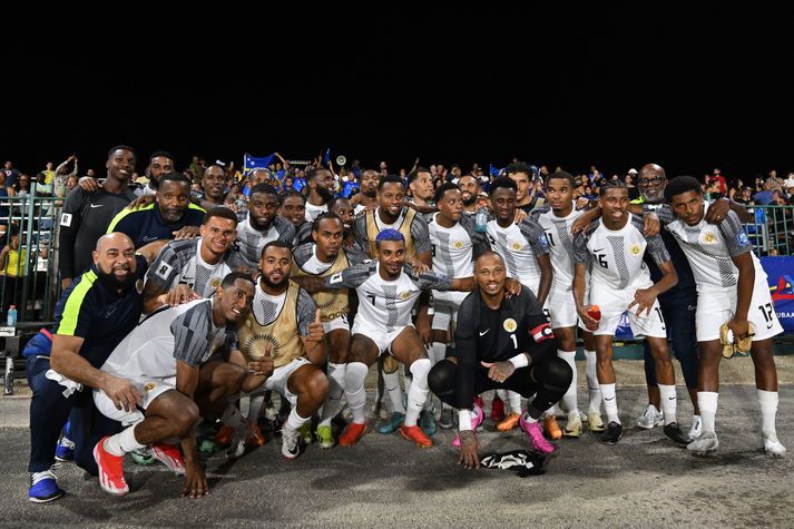 Ísland setti metið með því að tryggja sér sæti á heimsmeistaramótinu í Rússlandi sumarið 2018. Nú er þetta met Íslands í miklum mæli þökk sé fámennri þjóð úr Karabíska hafinu. Curacao er í góðum málum í sínum riðli í undankeppni Norður- og Mið-Ameríku eftir 2-0 sigur á Jamaíku um helgina. Landsliðsmenn Curacao hafa staðið sig frábærlega í undankeppni HM til þessa.Getty/ANP Curacao er í efsta sæti riðilsins með sjö stig, einu stigi meira en Jamaíka. Það eru þrír leikir eftir og því níu stig eftir í pottinum. Efsta liðið tryggir sig inn á heimsmeistaramótið í Bandaríkjunum, Mexíkó og Kanada. Lokaleikurinn í riðlinum verður á milli Jamaíka og Curacao í nóvember en hann fer fram í Kingston í Jamaíku. Curacao gerði jafntefli við Trínidad á útivelli í fyrsta leik en hefur síðan unnið tvo heimaleiki í röð á móti Bermúda (3-2) og svo þennan sigur á Jamaíka. Leikurinn var spilaður á Ergilio Hato-leikvanginum í Willemstad, höfuðborg Curacao, sem tekur rúmlega níu þúsund manns. Curacao er eyríki í Karíbahafi, um 65 km undan strönd Venesúela. Það er rétt við Suður-Ameríku. Íslendingar voru rúmlega 350 þúsund þegar íslenska karlalandsliðið tryggði sig inn á HM fyrir átta árum. Það búa hins vegar aðeins 185 þúsund manns á Curacao og allt landið er aðeins 444 ferkílómetrar, eða minna en Reykjanesið. Það er því ljóst að Ísland missir metið takist Curacao að klára dæmið. Það fylgir þó sögunni að Curacao á eftir tvo útileiki en tveir af síðustu þremur leikjum Jamaíkumanna eru á heimavelli. View this post on Instagram A post shared by Izak (@hrvizak)