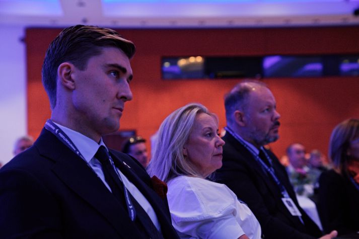 Það var rafmögnuð spenna fyrir kjör varaformanns Miðflokksins á Hótel Nordica í dag. Ingibjörg Davíðsdóttir og Snorri Másson voru tvö í framboði og þegar opnað var fyrir kosningu mynduðust langar raðir en 282 voru á kjörskrá. Snorri Másson, Sigmundur Davíð Gunnlaugsson og Ingibjörg Davíðsdóttir fyrir varaformannskjörið.Vísir/Lýður Valberg Sigmundur Davíð Gunnlaugsson var sjálfkjörinn formaður og því var kosning varaformanns það sem beðið var eftir. Bergþór Ólason dró framboð sitt til baka í gær og því stóð valið á milli áðurnefndra tveggja þingmanna. Alls greiddu 201 atkvæði í kosningunni og vann Snorri sigur með 136 atkvæðum gegn 64 atkvæðum Ingibjargar. „Meðbyrinn er slíkur að fólk streymir til okkar“ Í viðtali við fréttastofu strax eftir kjörið sagðist Snorri þakklátur fyrir stuðninginn en hann fyndi jafnframt fyrir þyngri byrðum á herðum sér. Snorri Másson nýr varaformaður Miðflokksins með syni sínum Má Snorrasyni.Vísir/Lýður Valberg „Ég hef reynt að nálgast það í stjórnmálum að reyna að axla eins mikla ábyrgð og mér getur verið fengin. Þetta er slíkt skref og ég er afskaplega sáttur og líður vel með þetta,“ sagði nýkjörinn varaformaður Miðflokksins. „Mig hefur langað og þyrst að fara í þessa uppbyggingu fjöldahreyfingar sem framundan er hjá okkur í Miðflokknum. Meðbyrinn er slíkur að fólk streymir til okkar og ég þarf bara að finna eitthvað fyrir það að gera og kynna það fyrir hinu fólkinu. Ég mun halda á þessum þráðum.“ „Ég mun bara hlíta hans ákvörðun, ég hef aldrei skorast undan neinu“ Mótframbjóðandinn Ingibjörg Davíðsdóttir sagðist ekki vera svekkt með niðurstöðuna. „Ég mun fylkja mér bak nýjum varaformanni, við erum öll að vinna að því að stækka flokkinn og vonandi er þetta besta leiðin til þess. Ég óska honum innilega til hamingju.“ Ingibjörg á þinginu í dag.Vísir/Lýður Valberg Enn hefur ekki verið gefið út hver verður þingflokksformaður Miðflokksins en Bergþór Ólason tilkynnti á dögunum að hann myndi ekki halda því hlutverki áfram. „Fyrst þú spyrð, ég var ekki búin að hugsa út í það. Það er vanalega formaður flokksins sem tekur þá ákvörðun. Ég mun bara hlíta hans ákvörðun í því, ég hef aldrei skorast undan neinu,“ sagði Ingibjörg. Segir umræðuna um hann oft geta verið neikvæða úr ákveðnum áttum Snorri segist merkja skýra breytingu á Miðflokknum á því eina ári síðan hann kom inn í starfið. „Flokksmenn okkar eru að gera hlutina af miklu meiri krafti og sömuleiðis ungt, metnaðarfullt og klárt fólk sem er reiðubúið að leggja sitt af mörkum og er kannski búið að fatta að það verður að gera það.“ Í vor eru framundan sveitarstjórnarkosningar sem Snorri segir mikið tækifæri fyrir flokkinn. Vinna sé framundan að bæði virkja fólk og hjálpa því af stað. „Ég finn að fólk þarf á okkur í forystunni að halda í því verkefni. Það kæmi mér verulega á óvart ef við næðum ekki raunverulegum árangri um allt land þar.“ Snorri á þinginu við hlið þingmannanna Sigríðar Andersen og Bergþórs Ólasonar.Vísir/Lýður Valberg Hann segist ekki upplifa að neikvæð umræða sé skaðleg fyrir flokkinn. „Ég upplifi frekar að það sé hópur sem treystir okkur til að vera þeirra rödd í sumum málum þar sem er mjög erfitt að hafa rödd. Það er ég bara mjög þakklátur fyrir að fá að gera.“ Snorri var mikið í umræðunni í kjölfar Kastljóssviðtals þar sem hann ræddi hinsegin málefni við Þorbjörgu Þorvaldsdóttur frá Samtökunum 78. Hann segist gera ráð fyrir neikvæðri umræðu í sínu daglega lífi. „Ég geri almennt greinarmun á neikvæðri umræðu og skaðlegri umræðu, annars myndi ég líklega ekki komast í gegnum daginn. Oft getur umræðan verið neikvæð um mann úr ákveðnum áttum þegar maður er að segja hluti sem kannski fullt af fólki treystir sér ekki til að segja.“ Ótrúleg stemmning á þinginu og vinna framundan að raða upp liði fyrir sveitarstjórnarkosningar Formaðurinn Sigmundur Davíð Gunnlaugsson sagði þingið upphafið að einhverju stórkostlegu í íslenskum stjórnmálum. „Það hefur verið ótrúlegt, rosalegt að upplifa stemmninguna á þessu þingi. Menn eru glaðir, þeir eru einbeittir og ég hlakka til að fylgja þessu þingi eftir með nýjum og glæsilegum varaformanni.“ Sigmundur Davíð á landsþingi Miðflokksins.Vísir/Lýður Valberg Snorri Másson er fyrsti varaformaður Miðflokksins síðan árið 2020 en þá var staðan lögð niður. Sigmundur segir að kjör Snorra þýði ekki að hann geti slakað á sem formaður. „Hugmyndin með þessu er ákveðin verkaskipting þar sem nýr varaformaður heldur utan um innra starf flokksins og hann boðaði það hér að það yrði settur mikill kraftur í það. Ég held að það sé afskaplega gott á þessum tímapunkti því járnið er heitt og um að gera að hamra það.“ Hann sagðist hafa orðið var við mikinn áhuga á Miðflokknum víða um landið og að flokkurinn myndi stefna á að bjóða fram í eigin nafni sem víðast. „Nú tekur sú vinna við að skipuleggja það allt saman og raða upp liði í sem flestum sveitarfélögum. Það er mikið tilhlökkunarefni finnst mér,“ sagði Sigmundur Davíð.