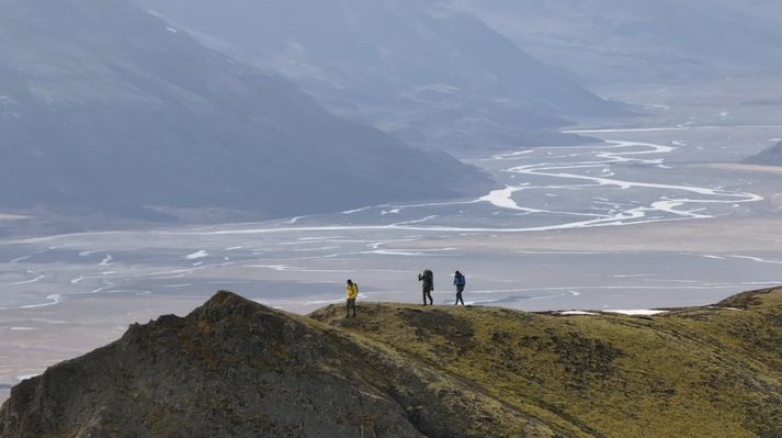 Hreindýraskítur, týnt barn og fjölskylduvæn fegurð Magnús Jochum Pálsson skrifar 16. október 2025 14:32 Ketillaugarfjall er fjölskylduvænt fjall að sögn fjallgöngugarpanna þriggja sem klifu það í Okkar eigin Íslandi. Garpur fór með Sigurði Karlssyni og Leifi Runólfssyni upp á Ketillaugarfjall í Nesjum í Hornafirði. Fjallið er fjölskylduvænt og litríkt en á leiðinni upp rákust þeir á hreindýrahjörð. „Það er alltaf verið að rukka mig um sjónvarpsþætti um fjöll sem allir geta farið, þetta er þannig fjall,“ segir Garpur í nýjasta Okkar eigin Íslands. „Þetta er fullkomið fjölskyldufjall,“ bætti Sigurður við um Ketillaugarfjall en slóðin upp 668 metra fjallið er ansi góður. Nafnið dregur fjallið af þjóðsögu um konu að nafni Ketillaug sem gekk í fjallið og hafði með sér ketil, fullan af gulli. „Ég var einmitt að þefa af þessu“ Garpur vissi að fjallið væri þekkt fyrir fegurð sína en hún kom honum samt í opna skjöld þegar þeir voru komnir upp að fjallinu. „Einhvers konar mini-Landmannalaugar, alls konar litir og alls konar berg,“ sagði hann um Ketillaugarfjall. Ekki nóg með að hafa fengið að dást að fjallinu heldur birtist þeim glæsileg hreindýrahjörð í fjarska. „Ég sá svolítið af hreindýraskít áðan,“ sagði Sigurður þegar þeir ráku loks augun í hreindýrin. „Ég var einmitt af þefa af þessu líka og mig grunaði að þetta væri hreindýr,“ bætti Garpur við. Hreindýrin sem strákarnir sáu. Skömmu síðar glötuðu þeir einum þriðjungi tríósins. „Við grínuðumst smá um það á leiðinni að Leifur væri smá eins og barnið okkar. Núna erum við hálfnaðir upp fjallið og við höfum ekki hugmynd hvar Leifur er, hann er týndur,“ segir Garpur á einum tímapunkti í þættinum. Leifur lét þó á endanum sjá sig og hittust þeir á toppnum, dáðust að stórbrotnu útsýninu og sötruðu ropvatn. Þeir trítluðu síðan niður fjallið og fengu sér humarsúpu í Höfn. Sjón er sögu ríkari. Fjallið er fagurt. Magnað útsýni. Mountain Dew á toppnum. Okkar eigið Ísland Fjallamennska Ferðalög Sveitarfélagið Hornafjörður Tengdar fréttir „Ákvað að skilja hana eftir þar og athuga hversu langt ég kæmist“ „Ég er mættur í eiginlega algjöra óvissuferð, sem hófst í morgun þegar ég sótti móður mína í Hveragerði og skutlaði henni í Selsund sem er bóndabær undir Heklu. Ég ákvað að skilja hana eftir þar og athuga hversu langt ég kæmist á bílnum að Krakatind.“ 3. október 2025 14:32 Ótrúlegt útsýni og erfiðar aðstæður á Skessuhorni Ævintýramaðurinn Garpur klifraði með vini sínum Bergi upp á Skessuhorn sem er eitt besta útsýnisfjall Borgarfjarðar. Útsýnið stóð sannarlega undir nafni en aðstæðurnar voru líka krefjandi. 18. september 2025 09:31 Gengu um rústir ratsjárstöðvar og klifu fáfarnasta fjall Hornstranda Garpur Elísabetarson fór ásamt Þorsteini Mássyni, skipstjóra og framkvæmdastjóra, til Aðalvíkur á Hornströndum þar sem þeir gengu upp á fjöllin Darra, sem geymir rústir breskrar ratsjárstöðvar og Rit, einn fáfarnasta stað Hornstranda. 4. september 2025 07:02 Mest lesið Ljóstrar upp um kornið sem fyllti mælinn Lífið Slappur smassborgari Gagnrýni „Bíður bara inni í skáp eftir brúðkaupinu“ Tíska og hönnun Leikkonur á túr: Fimm verstu rasshausa-ummælin Lífið Íslensk hönnun á forsíðu Wall Street Journal: „Hún hafði samband við mig á Instagram“ Lífið Hugmynd Chris Hemsworth að synda í kringum Ísland Lífið Fékk Laufeyju í afmælið: „Maggi bróðir hefur alltaf verið betri en aðrir að gefa gjafir“ Lífið „Stöðugar gaslýsingar“ Federline gríðarlega særandi Lífið Tíu smart kósýgallar Lífið Menningarvaktin: Ráðning óperustjóra jafn spennandi og þjálfara KR Menning Fleiri fréttir Íslensk hönnun á forsíðu Wall Street Journal: „Hún hafði samband við mig á Instagram“ Hnusað af hreindýraskít á leið upp „fullkomið fjölskyldufjall“ „Draumar geta ræst“ „Við erum orðlaus yfir hæfileikunum“ Hugmynd Chris Hemsworth að synda í kringum Ísland Ljóstrar upp um kornið sem fyllti mælinn Tíu smart kósýgallar „Stöðugar gaslýsingar“ Federline gríðarlega særandi Tulipop-leiksvæði opnað á Keflavíkurflugvelli Leikkonur á túr: Fimm verstu rasshausa-ummælin „Ef ég vil breyta heiminum þarf ég að byrja á mér sjálfri“ Fékk Laufeyju í afmælið: „Maggi bróðir hefur alltaf verið betri en aðrir að gefa gjafir“ Leyndarmál Móu að hinni fullkomnu kvöldförðun Allt jafnt fyrir lokaspurninguna og spurt var um stað Vakti yfir sofandi sonunum vopnuð hnífi Stíflaður mjólkurkirtill reyndist ólæknandi krabbamein „Lífið gefur okkur mislangan tíma og ég vil nýta minn til hins ýtrasta“ Þúsundir fögnuðu Steinu og sögulegu samstarfi Helen Óttars og Rubin Pollock slá sér upp Alma Möller, Binni Glee og Sigríður Snævarr saman í bíó Plakatarisi og uppáhalds listamaður Spielberg allur Hélt auganu en missti af frumsýningu eftir að hafa fengið golfkúlu í andlitið „Hvetjandi að sjá stelpu með sama húðlit og ég sigra“ Heitasta hámhorfið í haust Pistasíu- og döðludraumur Jönu D'Angelo er látinn Laufey gerist rithöfundur Boðberi jólanna risinn á ný „Hélt að hjartað myndi springa úr brjóstinu“ Vigdís Häsler flutt til Sveins Andra Sjá meira