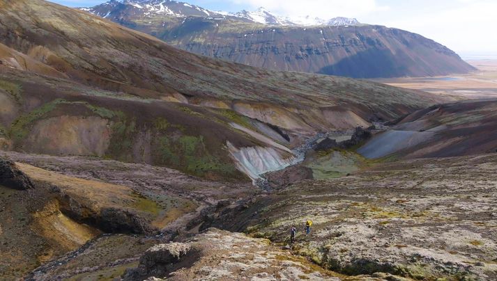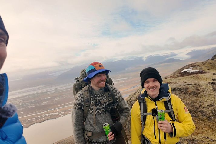 „Það er alltaf verið að rukka mig um sjónvarpsþætti um fjöll sem allir geta farið, þetta er þannig fjall,“ segir Garpur í nýjasta Okkar eigin Íslands. „Þetta er fullkomið fjölskyldufjall,“ bætti Sigurður við um Ketillaugarfjall en slóðin upp 668 metra fjallið er ansi góður. Nafnið dregur fjallið af þjóðsögu um konu að nafni Ketillaug sem gekk í fjallið og hafði með sér ketil, fullan af gulli. „Ég var einmitt að þefa af þessu“ Garpur vissi að fjallið væri þekkt fyrir fegurð sína en hún kom honum samt í opna skjöld þegar þeir voru komnir upp að fjallinu. „Einhvers konar mini-Landmannalaugar, alls konar litir og alls konar berg,“ sagði hann um Ketillaugarfjall. Ekki nóg með að hafa fengið að dást að fjallinu heldur birtist þeim glæsileg hreindýrahjörð í fjarska. „Ég sá svolítið af hreindýraskít áðan,“ sagði Sigurður þegar þeir ráku loks augun í hreindýrin. „Ég var einmitt af þefa af þessu líka og mig grunaði að þetta væri hreindýr,“ bætti Garpur við. Hreindýrin sem strákarnir sáu. Skömmu síðar glötuðu þeir einum þriðjungi tríósins. „Við grínuðumst smá um það á leiðinni að Leifur væri smá eins og barnið okkar. Núna erum við hálfnaðir upp fjallið og við höfum ekki hugmynd hvar Leifur er, hann er týndur,“ segir Garpur á einum tímapunkti í þættinum. Leifur lét þó á endanum sjá sig og hittust þeir á toppnum, dáðust að stórbrotnu útsýninu og sötruðu ropvatn. Þeir trítluðu síðan niður fjallið og fengu sér humarsúpu í Höfn. Sjón er sögu ríkari. Fjallið er fagurt. Magnað útsýni. Mountain Dew á toppnum.