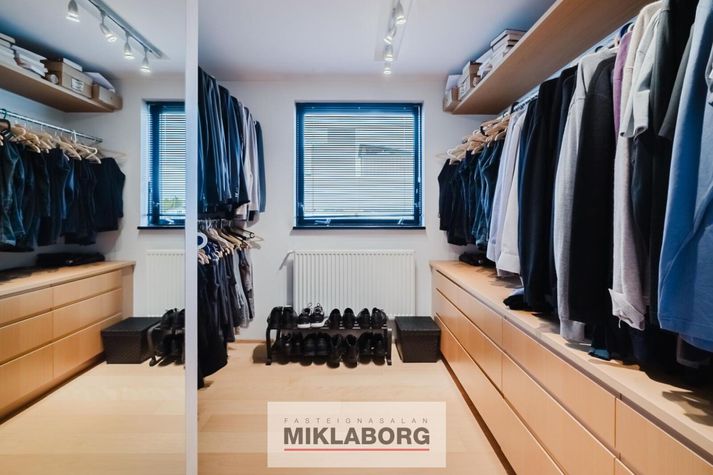 Fasteignamat eignarinnar er 163 milljónir en um er að ræða 338 fermetra þriggja hæða hús í Seljahverfinu í Breiðholti. Ekkert verð er gefið upp fyrir eignina heldur óskað eftir tilboði. Í lýsingu segir að húsið sé vel skipulagt. Það séu fjögur svefnherbergi, bílskúr, stór og ræktuð lóð við friðað svæði og að staðsetningin sé einkar friðsæl. Þá kemur fram að húsið hafi verið mikið endurnýjað. Svæðið við húsið er friðað. Í húsinu eru tvö fataherbergi, baðherbergi með spa stemningu og líkamsrækt í bílskúr. „Lóðin er afar falleg og vel hönnuð, hellulögð að hluta með góðum palli, barnahúsi og gróðursælum garði þar sem álfasteinn prýðir svæðið. Hægt er að njóta bæði morgun- og kvöldsólar í þessu friðsæla umhverfi. Þetta er einstaklega hlýlegt og vandað heimili á einum af bestu stöðunum í Seljahverfi eða á höfuðborgarsvæðinu ef út í það yrði farið,“ segir í lýsingunni. Nánari upplýsingar um eignina má finna á fasteignavef Vísis. Spa-stemning á baðherberginu. Tvö fataherbergi eru í húsinu.