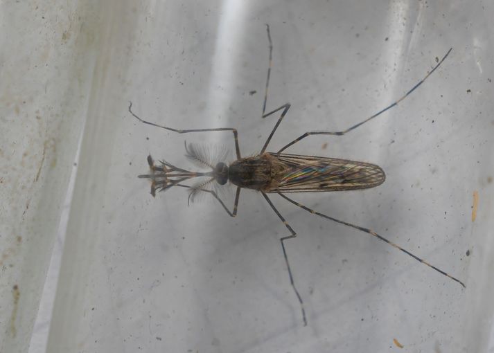 „Dömur mínar og herrar – má ég kynna ... í fyrsta sinn á Íslandi.. MOSKÍTÓ!“ Þannig tekur Björn Hjaltason skordýraáhugamaður til orða í Facebook-hópnum Skordýr á Íslandi í morgun. Hann rekur heimsókn flugunnar óvinsælu allt frá fimmtudagskvöldinu í síðustu viku. „Í rökkurbyrjun að kvöldi 16. október rak ég augun í ókennilega flugu á rauðvínsbandi. Læddist strax að mér grunur um hvað væri á ferð og var flugunni snarlega safnað. Var það kvendýr,“ segir Björn. Björn útskýrir í samtali við Vísi hvernig hann notar rauðvín blandað saman við sykur til að búa til lög. Hann dýfir böndum í löginn sem skordýr sækja í. „Ég hef verið að stúdera náttfiðrildi. Þau koma í þessi bönd þegar það er komið myrkur. Þetta er bara meðafli með því,“ segir Björn. Dýrin drekka sykurinn á meðan honum gefst tími til að virða þau fyrir sér. Karldýr sem heimsótti Björn í Kjósina.Björn Hjaltason Kvöldið eftir mætti karldýr á rauðvínsbandið og enn kom fluga á laugardagskvöldið, aftur kvendýr. Björn segir að Matthías S. Alfreðsson, skordýrafræðingur á Náttúrufræðistofnun Íslands, hafi þegar greint fluguna. Tegundin er Culiseta annulata. „Já síðasta vígið virðist fallið,“ segir Björn og vísar til þess að Íslendingar hafi til þessa prísað sig sæla og jafnvel montað sig af því að vera laust við fluguna sem er þekkt fyrir stungur sínar. Lúsmýið og bitmýið virðist komið með samkeppni hér á landi. Björn segir sérstakt hvernig komu flugnanna beri til. Hann segist gruna járnblendið á Grundartanga hinum megin við fjörðinn þaðan sem flugurnar sóttu hann heim í Kjósina. „Það eru sex kílómetrar yfir í Grundartangahöfnina. En það er ekkert hægt að fullyrða það. Það er skrýtið að það komi þrjár flugur og fara beint í garðinn hjá mér. Þá hlýtur að hafa komið alveg hellingur,“ segir Björn. Björn Hjaltason er mikill áhugamaður um skordýr. Svo geti líka verið að þær séu bara mættar og séu að klekjast einhvers staðar. Hvort þær lifi af frostið sé óvíst. Þessi tegund sé þó á ferðinni allt árið, leggist í dvala og komi sér fyrir í útihúsum, hellum eða öðrum stöðum og haldi sér lifandi. Þótt frost sé í kortunum ætlar Björn að halda áfram að leggja bönd í rauðvínslög og fylgjast með gangi mála. Sjá hvort fleiri moskítóflugur banki upp á.