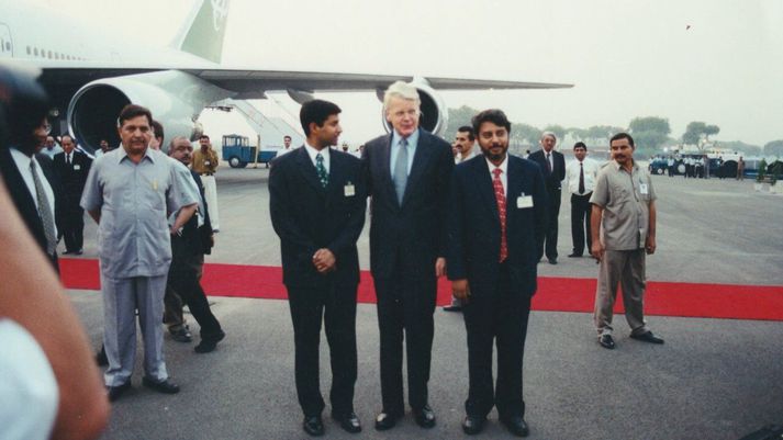 Þegar forseti Íslands mætti á júmbó-þotu Kristján Már Unnarsson skrifar 1. mars 2026 07:47 Forseti Íslands, Ólafur Ragnar Grímsson, kemur í opinbera heimsókn til Indlands árið 2000 á Boeing 747-400 risaþotu Air Atlanta. Lent var á flugvellinum í Nýju-Delí. KMU Ákvörðun Air Atlanta árið 1993 um að taka Boeing 747-þotur í rekstur þykir einhver sú djarfasta í sögu íslenskra flugmála. Júmbó-þoturnar voru á þeim tíma stærstu og dýrustu farþegaþotur heims. Í þættinum Flugþjóðin á Sýn+ er fjallað um júmbó-þotuna í höndum Íslendinga. Það þótti risastökk í íslenskri flugsögu og fyrir Air Atlanta þegar fyrsta 747-þotan var skráð á Íslandi en hún lenti á Keflavíkurflugvelli vorið 1993. Hún fékk einkennissstafina TF-ABK og nafnið Agnar Kofoed Hansen til heiðurs helsta frumkvöðli íslenskra flugmála. Þóra Guðmundsdóttir afhenti Eyjólfi Haukssyni flugstjóra blómvönd við komu fyrstu Boeing 747-þotu Air Atlanta til Íslands vorið 1993.Stöð 2/Magnús B. Magnússon Þóra Guðmundsdóttir, annar stofnanda Atlanta, rifjar upp hvernig henni leið að taka 747-þotu inn í rekstur Air Atlanta. „Ég var með stóran kökk í hálsinum. Og ég hugsaði bara fyrir sjálfa mig: Hvað ertu búin að koma þér út í! Svo leið ekki nema mánuður eða svo. Þá vantaði þá vél númer tvö,“ segir Þóra. „Svo rétt á eftir þrjár,“ segir Arngrímur Jóhannsson, fyrrverandi eiginmaður Þóru og hinn stofnandi félagsins. Arngrímur Jóhannsson, stofnandi Air Atlanta, á Flugsafni Íslands á Akureyri. Fyrir aftan er hreyfill af Boeing 747.Egill Aðalsteinsson „Þetta byggði til að byrja með á pílagrímaflutningum,“ segir Arngrímur. Þuríður Sigurðardóttir söngkona var í hópi flugfreyjanna í pílagrímafluginu hjá Air Atlanta. „Þetta er stórkostlegt tæki. Og það er alltaf jafn heillandi að vera á flugvelli og horfa á þetta ferlíki taka sig á loft. Það er engu líkt,“ segir Þuríður. Þuríður Sigurðardóttir söngkona starfaði sem yfirflugfreyja um borð í 747-þotum Atlanta.Egill Aðalsteinsson En það var jafnframt farið að nýta júmbó-þotur Atlanta til að bjóða Íslendingum ódýrt flug til útlanda á vegum ferðaskrifstofunnar Samvinnuferða, eins og til dæmis til Bahama-eyja. Þóra lýsir einnig ferðum með forseta Íslands, Ólaf Ragnar Grímsson, í opinberar heimsóknir, eins og til dæmis til Indlands. Á flugvellinum í Nýju-Delí árið 2000. Júmbó-þotan fyrir aftan. „Þetta var svolítið grand.“KMU Forsetinn og sendinefnd hans tóku þó aðeins lítinn hluta sætanna. Áskrifendum Stöðvar 2 var boðið að kaupa stærsta hlutann. Það þótti hins vegar tilkomumikið að sjá forseta Íslands mæta í opinbera heimsókn til Indlands á júmbó-þotu, rétt eins og hér væri Bandaríkjaforseti á ferð. „Það var svolítið grand,“ segir Þóra í þættinum en hér má sjá sjö mínútna kafla. Þátturinn um júmbó-þotuna er sá sextándi í þáttaröðinni. Áskrifendur geta séð þáttinn í heild sem og alla þætti Flugþjóðarinnar á streymisveitunni Sýn+. Flugþjóðin Air Atlanta Fréttir af flugi Forseti Íslands Tengdar fréttir Flugfólkið þurfti stöðugt að varast trúarlögregluna Þegar Air Atlanta tók að sér viðamikið pílagrímaflug fyrir Saudia-flugfélagið árið 1993 lét Þóra Guðmundsdóttir, annar stofnanda félagsins, hanna og sauma sérstaka flugfreyjabúninga. Í þættinum Flugþjóðin lýsa fyrrverandi og núverandi starfsmenn íslenskra flugfélaga því hvernig var að starfa undir vökulum augum trúarlögreglu í Sádí-Arabíu. 8. febrúar 2026 08:00 „Ég vissi það þó að innkoman yrði að vera meiri en útgjöldin“ Einn helsti brautryðjandi flugútrásar Íslendinga, Arngrímur Jóhannsson, segir galdurinn að góðum árangri ekki flókinn; innkoman verði að vera meiri en útgjöldin. Í þættinum Flugþjóðin Stöð 2 í kvöld var fjallað um alþjóðaútrás Íslendinga í fluginu í gegnum tíðina. 18. mars 2025 21:42 Flugfreyjusætið var inni á klósettinu Þau Arngrímur og Þóra voru lengi frægustu flughjón Íslands. Svo skildu þau, eftir að hafa byggt upp flugfélagið Air Atlanta úr engu og gert það að stórveldi. 19. ágúst 2025 12:00 Hér sést risaþotan taka á loft frá Keflavíkurflugvelli Síðasta farþegaflug Air Atlanta á Boeing 747-júmbóþotunni var í dag og flaug vélin sérstakan kveðjuhring yfir Reykjavíkursvæðinu. Forstjóri Atlanta segir þessa flugvélartegund hafa byggt upp félagið. 3. október 2024 21:31 Mest lesið Stríðið muni halda áfram út vikuna Erlent Klerkurinn felldur í fyrstu lotu Erlent Þegar forseti Íslands mætti á júmbó-þotu Innlent Trump: Khamenei látinn Erlent Ísrael og Bandaríkin ráðast á Íran Erlent Hafnar átökum eða árekstrum við fyrrverandi forstjóra Innlent Illugi kjörinn formaður Ungra vinstri grænna Innlent Þau skipa lista Sjálfstæðisflokksins í Reykjavík Innlent Snjókoma víða en bjart sunnan heiða Veður Fjöldi látinn eftir að herþota hafnaði á hraðbraut Erlent Fleiri fréttir Þegar forseti Íslands mætti á júmbó-þotu Illugi kjörinn formaður Ungra vinstri grænna Hafnar átökum eða árekstrum við fyrrverandi forstjóra Þessi skipa lista Framsóknar í Reykjavík Þau skipa lista Sjálfstæðisflokksins í Reykjavík Færeyskir sjómenn á grænlenskum togara kusu á Íslandi Sjálfstæðisflokkurinn kynnir framboðslista í Reykjavík Um helmingur landsmanna hefur miklar áhyggjur af ásælni Bandaríkjanna í Grænland Fjórtán gefa kost á sér á lista Sjálfstæðismanna í Eyjum Guðmundur Árni leiðir áfram listann Býst að raforkuverð hækki samfara fyrirhuguðum skattabreytingum Gylfi Þór leiðir Viðreisn í Mosfellsbæ Segir áhyggjuefni að leikreglur séu virtar að vettugi Forsetahjónin verða viðst
