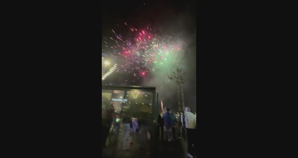 Áhorfendur í nánd við flugelda á opnunarhátíð Fjarðarins