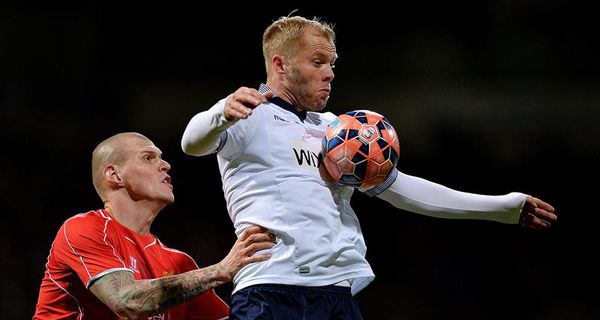 Jordan Henderson kemur Liverpool yfir með föstu skoti.